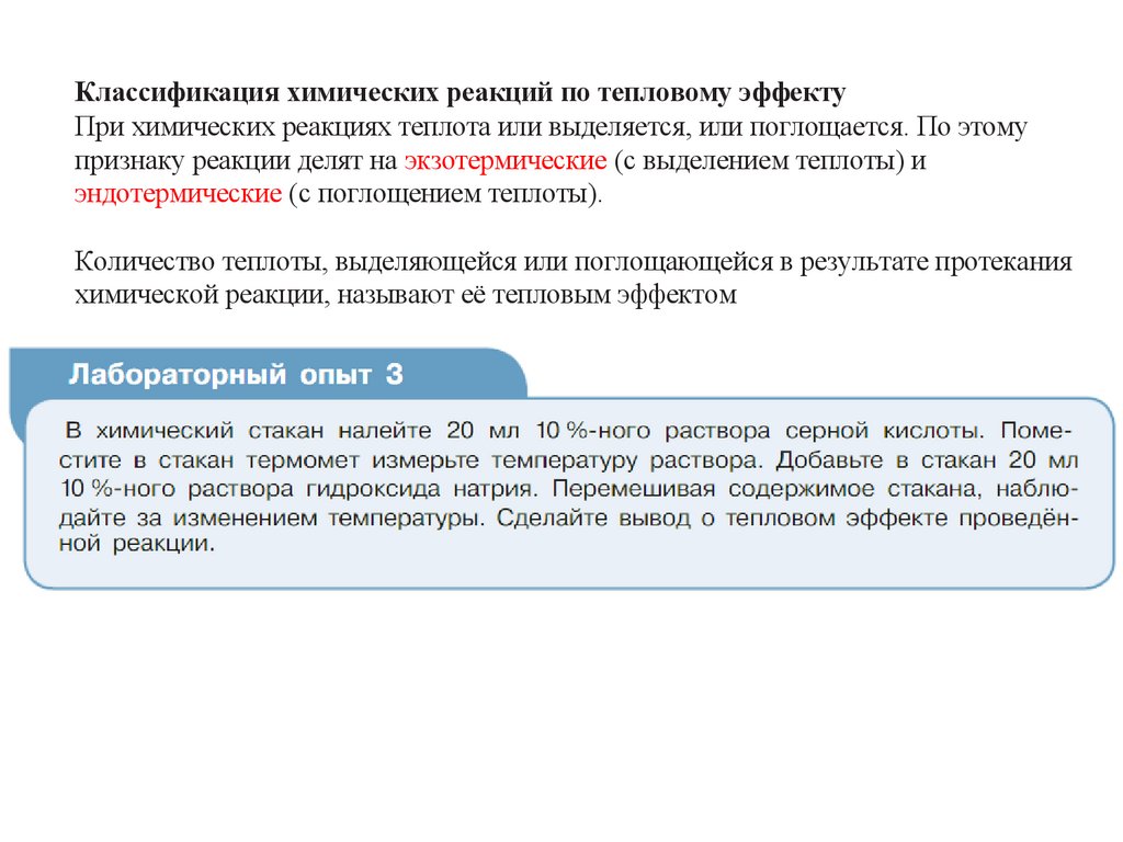 Классификация химических реакций по тепловому эффектуПри химических реакциях теплота или выделяется, или поглощается. По этому