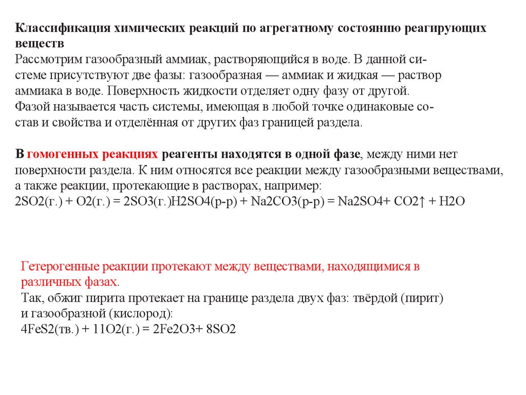 Классификация химических реакций по агрегатному состоянию реагирующихвеществ