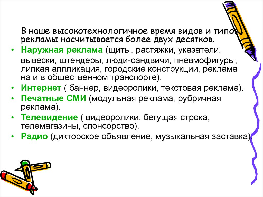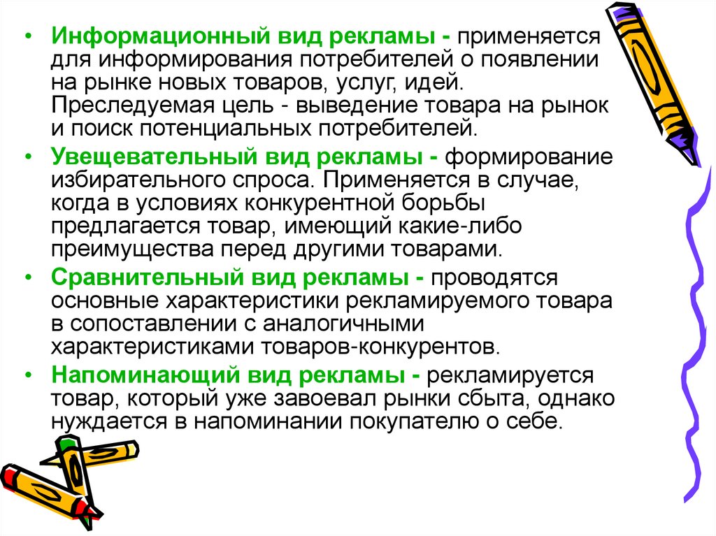 • Информационный вид рекламы - применяетсядля информирования потребителей о появлении