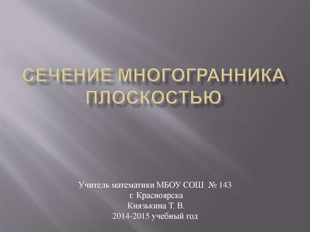 Учитель математики МБОУ СОШ № 143г. Красноярска