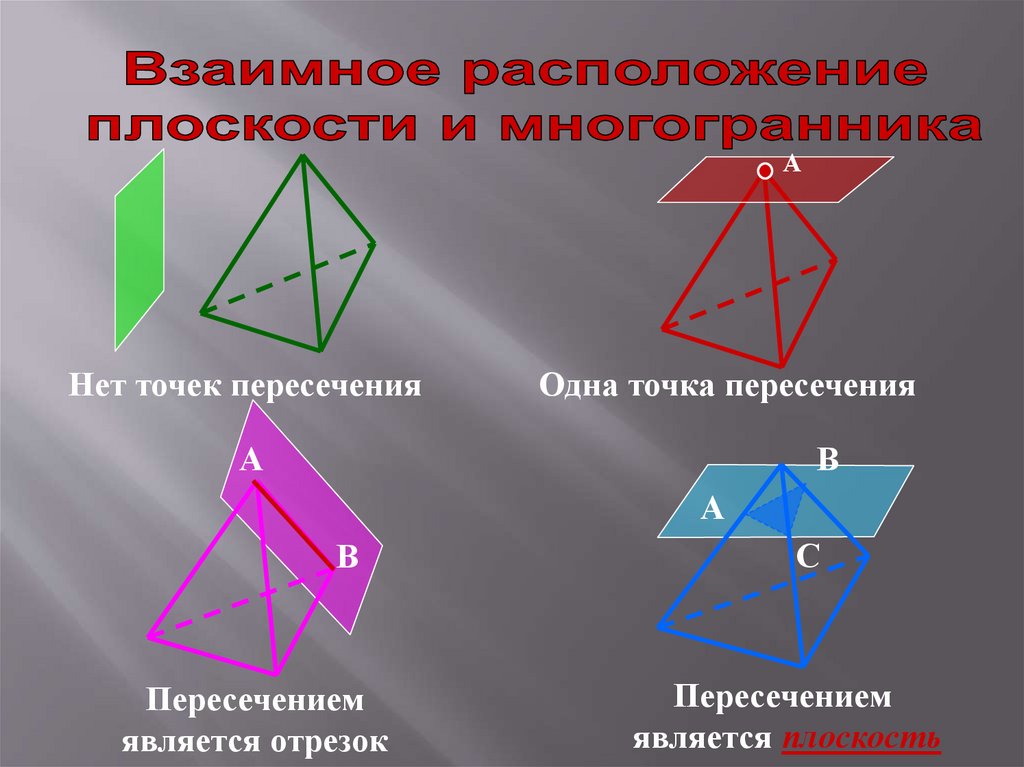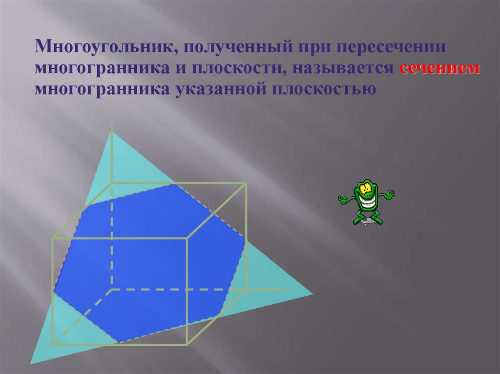 Многоугольник, полученный при пересечениимногогранника и плоскости, называется сечением