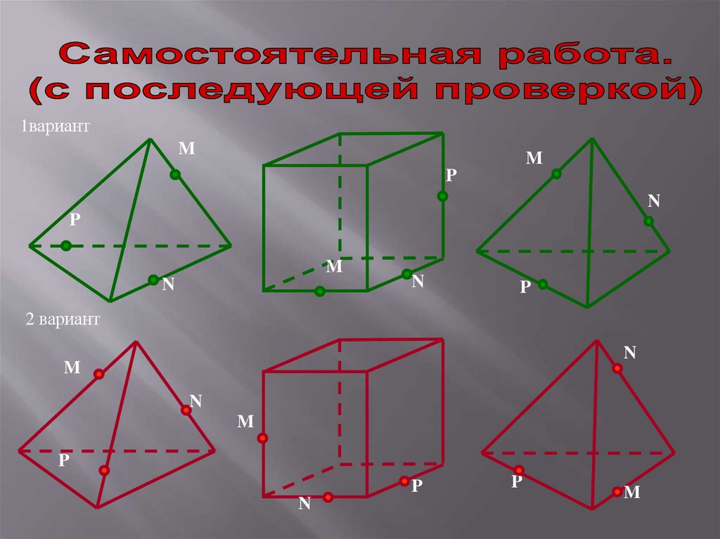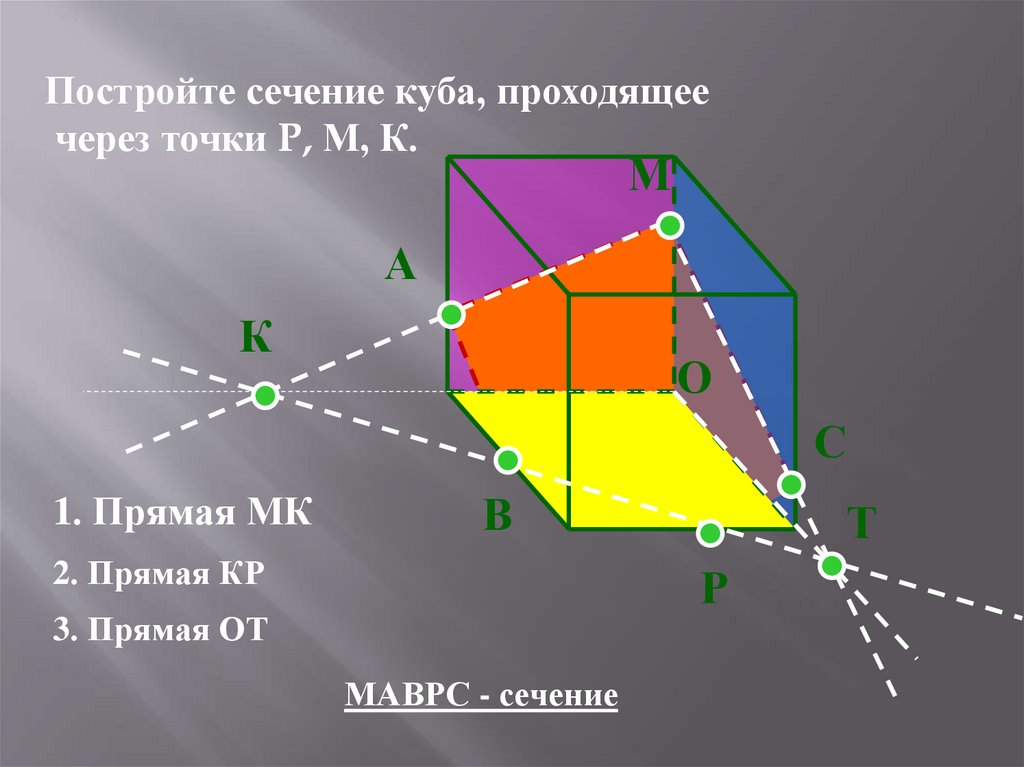 Постройте сечение куба, проходящеечерез точки P, М, К.