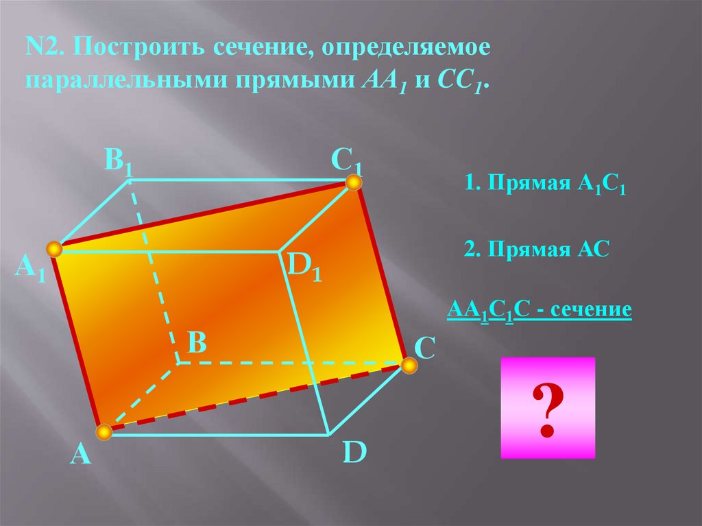 N2. Построить сечение, определяемоепараллельными прямыми АА1 и CC1.