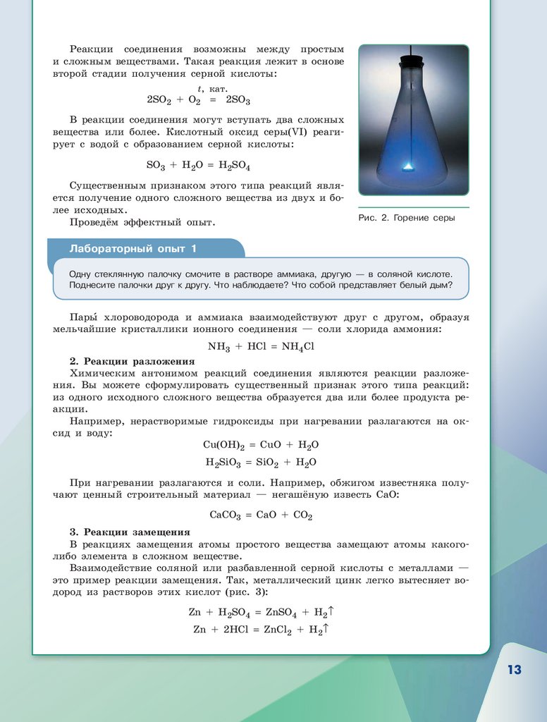 Существенным признаком этого типа реакций является получение одного сложного вещества из двух и более исходных.