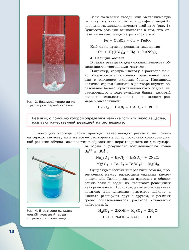 Например, серную кислоту в растворе можно обнаружить с помощью характерной реакции с раствором хлорида бария. Признаком