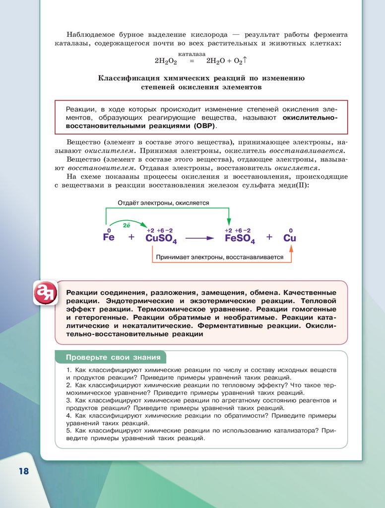 и гетерогенные. Реакции обратимые и необратимые. Реакции каталитические и некаталитические. Ферментативные реакции. Окислительно-восстановительные реакции