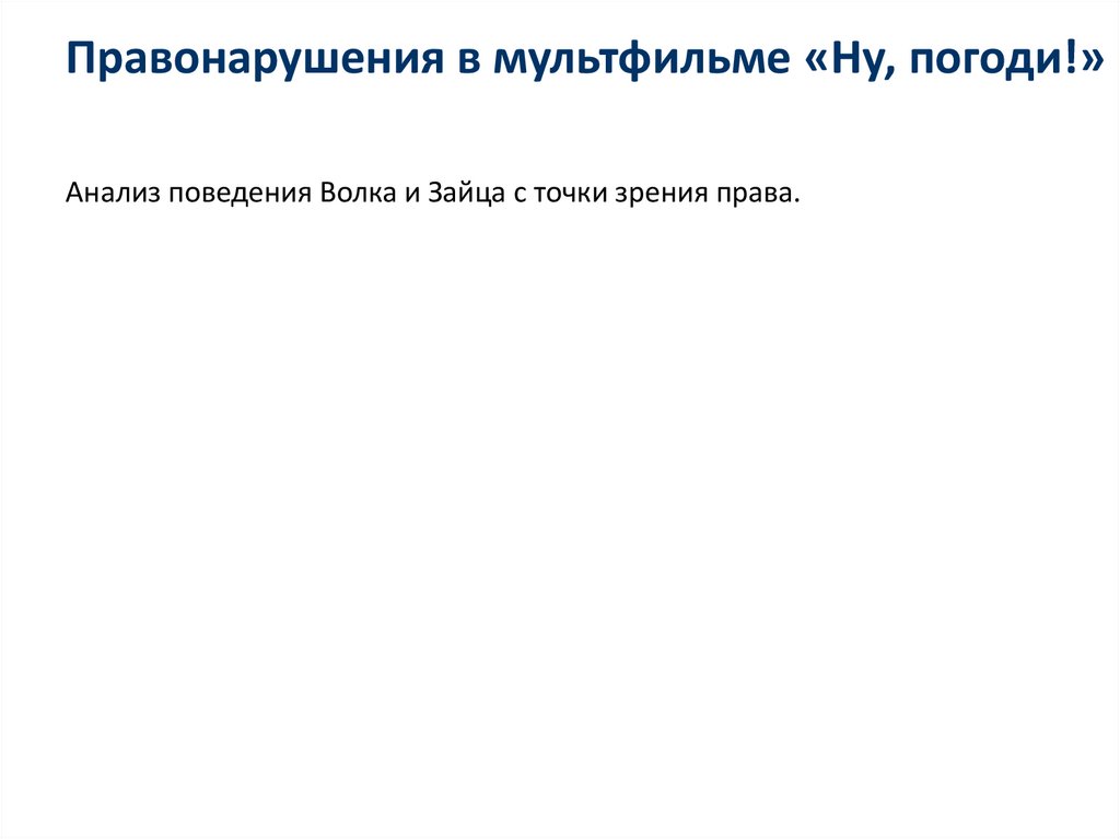Правонарушения в мультфильме «Ну, погоди!»Анализ поведения Волка и Зайца с точки зрения права.