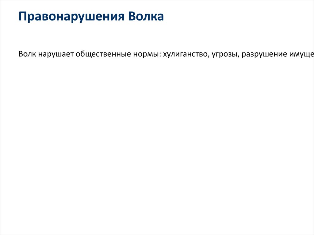Правонарушения ВолкаВолк нарушает общественные нормы: хулиганство, угрозы, разрушение имущес