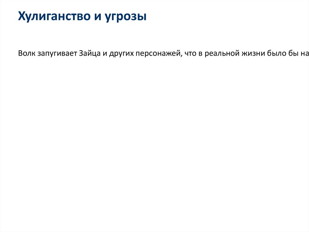 Хулиганство и угрозыВолк запугивает Зайца и других персонажей, что в реальной жизни было бы нак