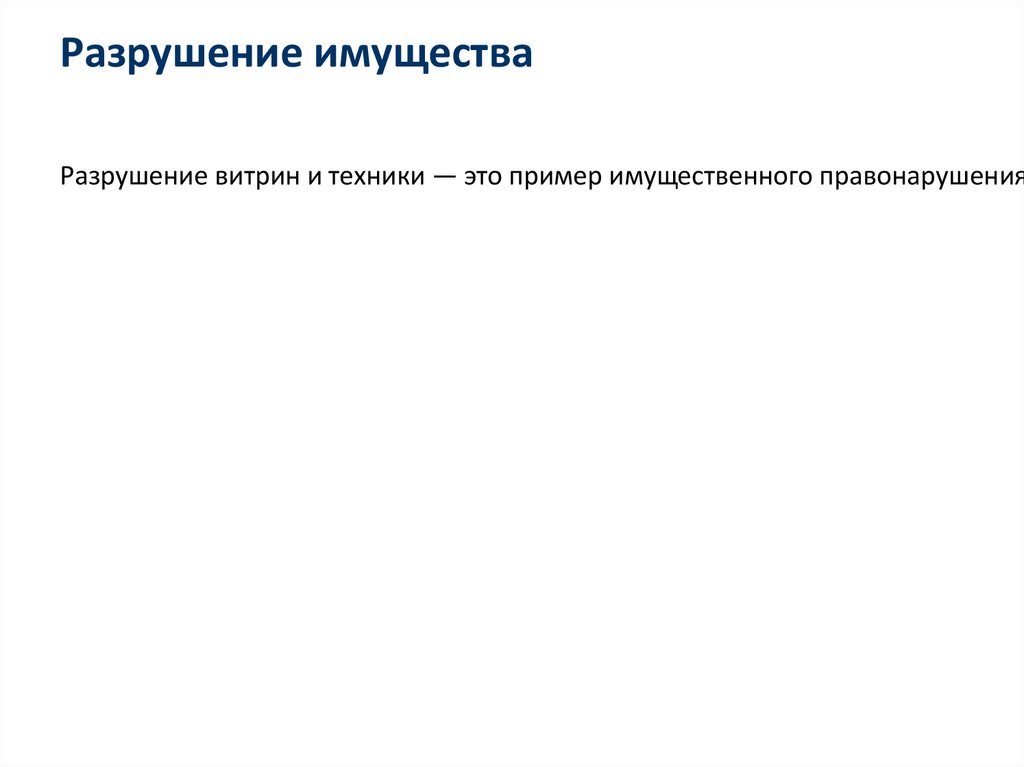 Разрушение имуществаРазрушение витрин и техники — это пример имущественного правонарушения