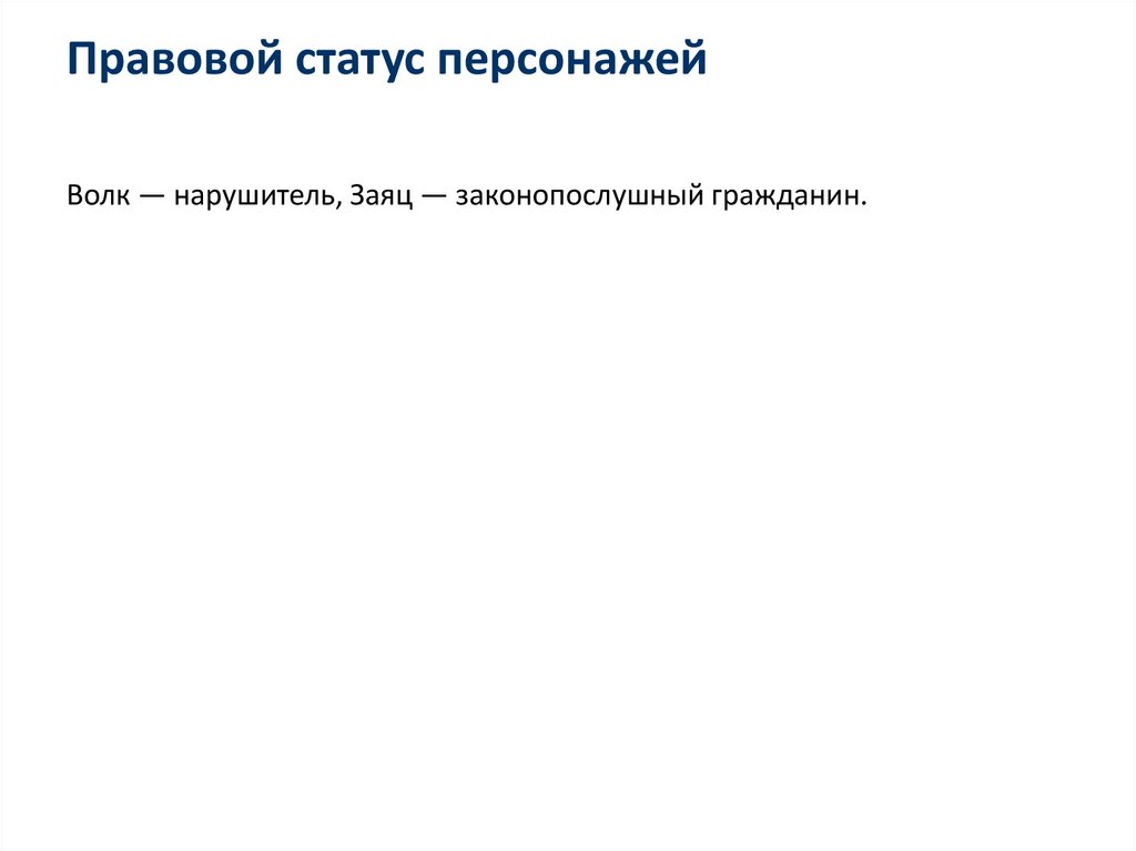 Правовой статус персонажейВолк — нарушитель, Заяц — законопослушный гражданин.