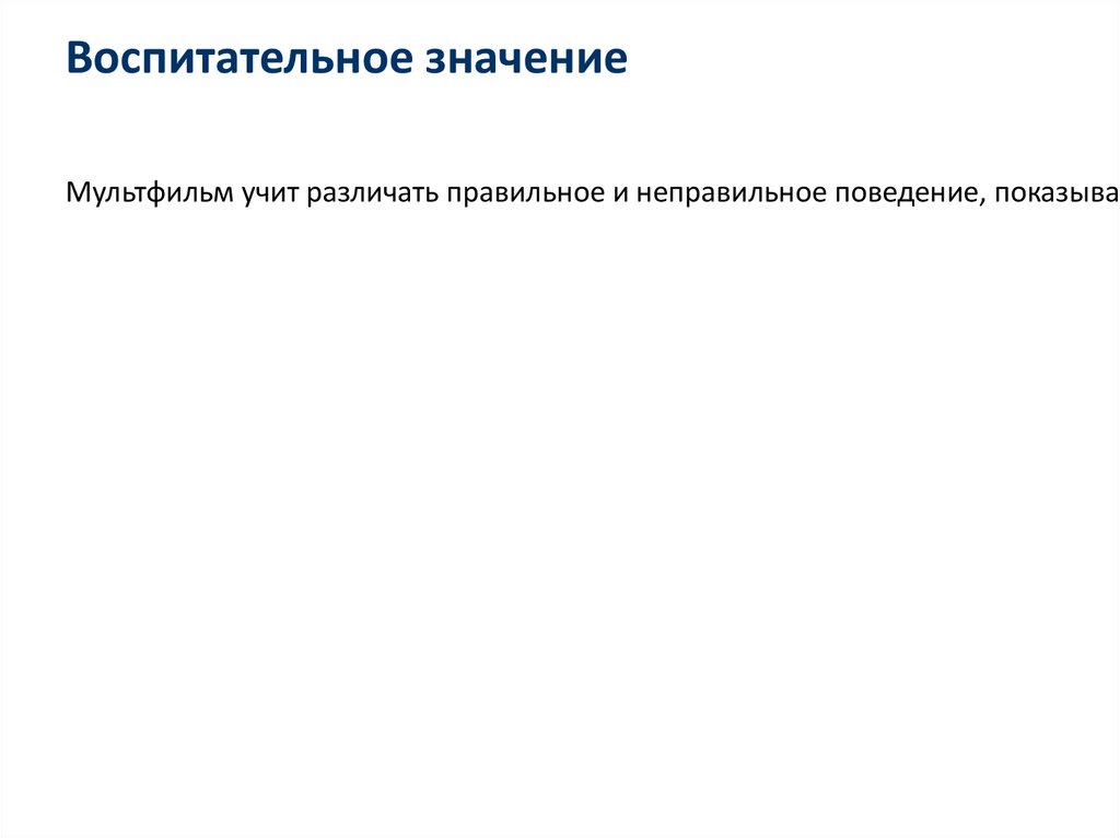 Воспитательное значениеМультфильм учит различать правильное и неправильное поведение, показывае