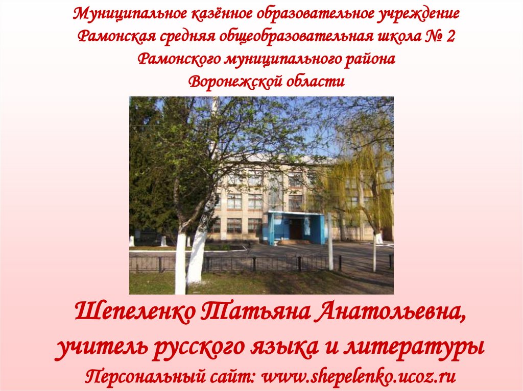 Муниципальное казённое образовательное учреждениеРамонская средняя общеобразовательная школа № 2
