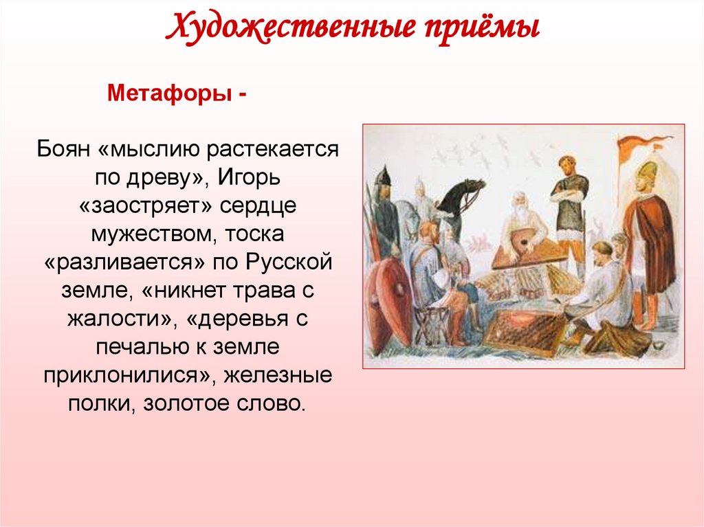 Художественные приёмыМетафоры Боян «мыслию растекается