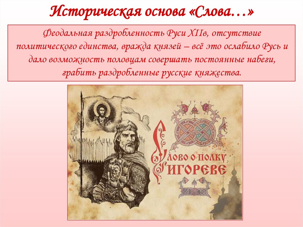 Историческая основа «Слова…»Феодальная раздробленность Руси XIIв, отсутствие