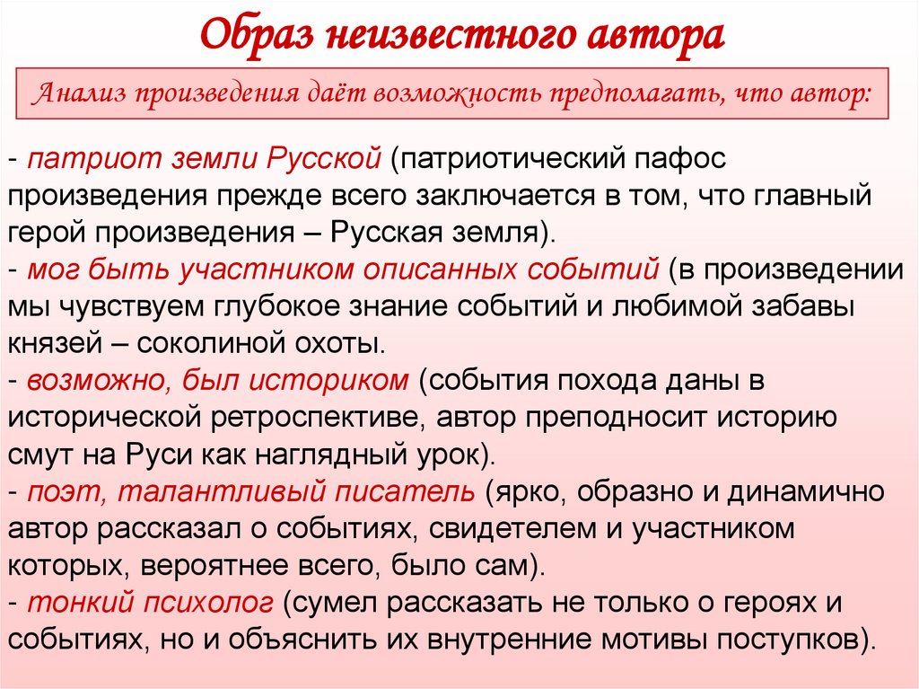 Образ неизвестного автораАнализ произведения даёт возможность предполагать, что автор: