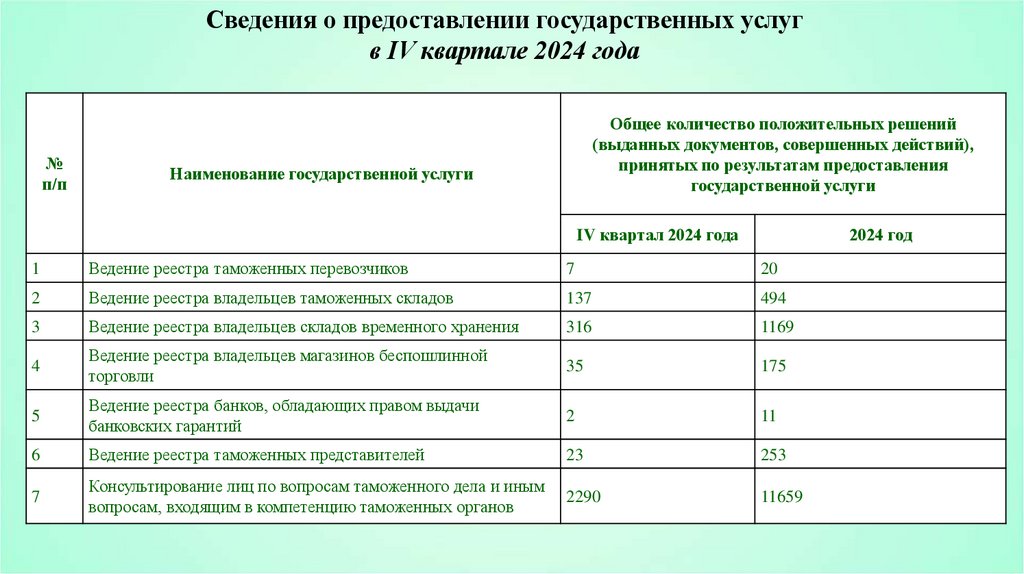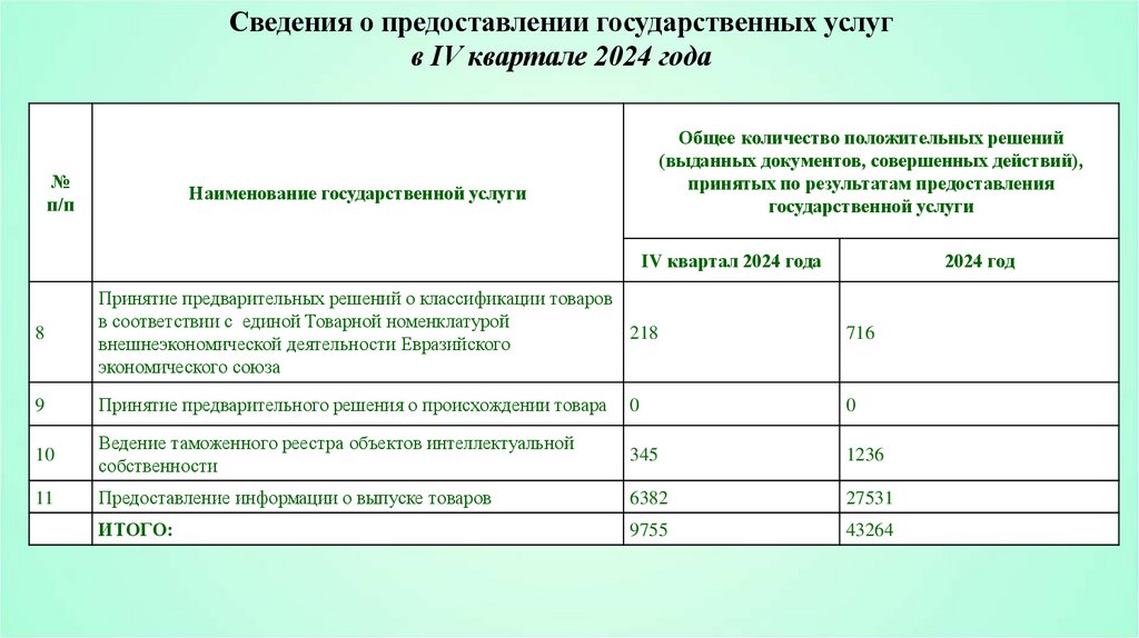 Сведения о предоставлении государственных услугв IV квартале 2024 года