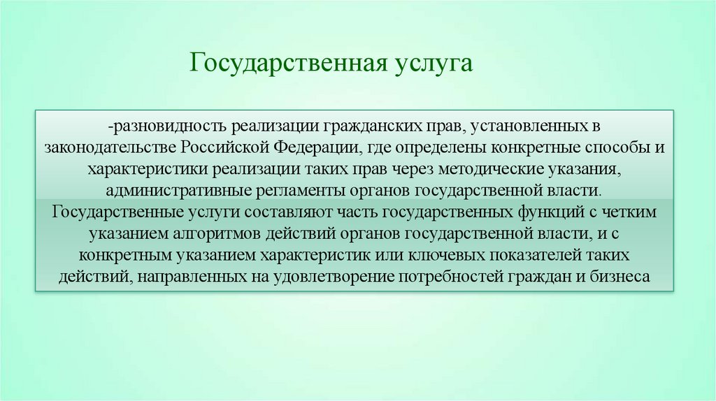 Государственная услуга-разновидность реализации гражданских прав, установленных в