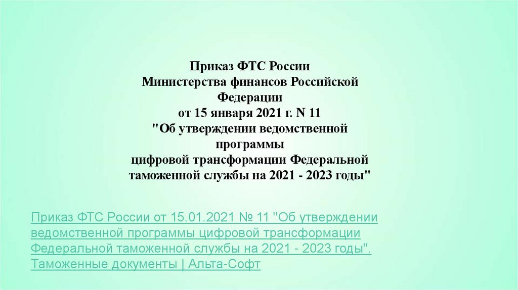 программы цифровой трансформации Федеральной таможенной службы на 2021 - 2023 годы"