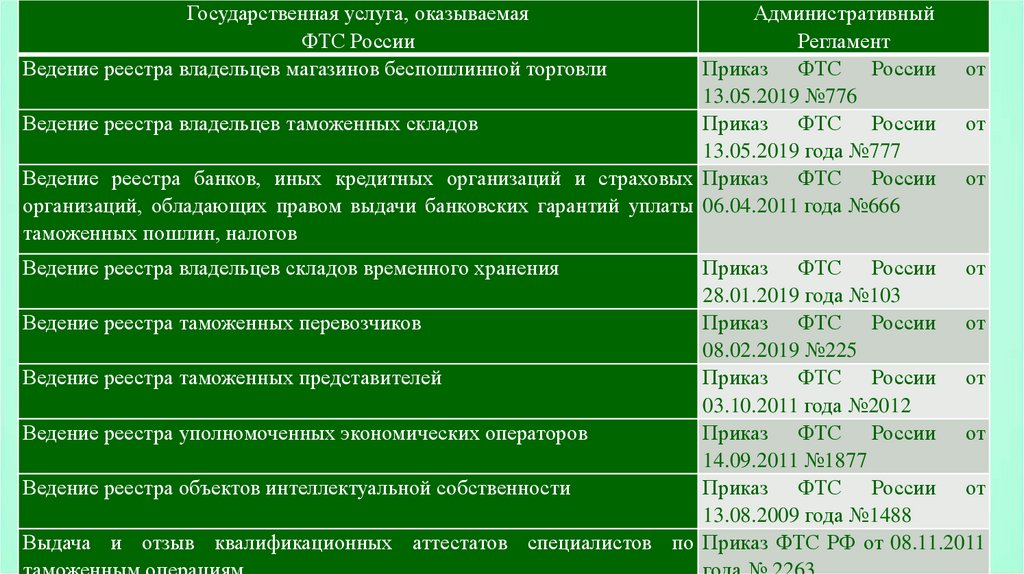 Ведение реестра банков, иных кредитных организаций и страховых Приказ ФТС России