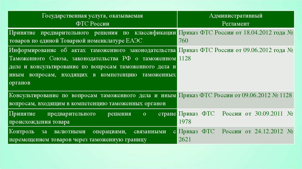 Консультирование по вопросам таможенного дела и иным Приказ ФТС России от 09.06.2012 № 1128