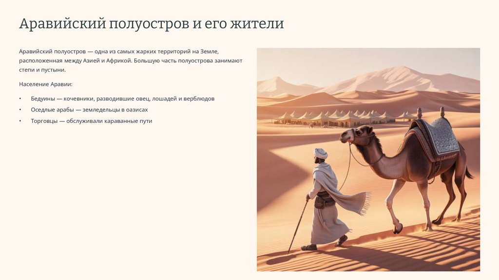 Аравийский полуостров и его жителиАравийский полуостров — одна из самых жарких территорий на Земле,