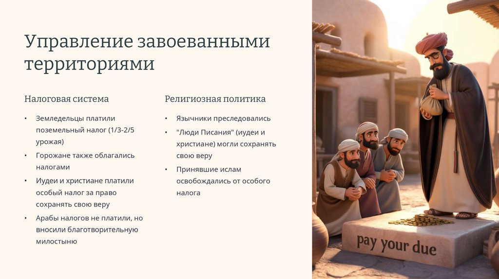 институты, арабы создали государство на собственной территории, а затем расширили его путем завоеваний, опираясь на