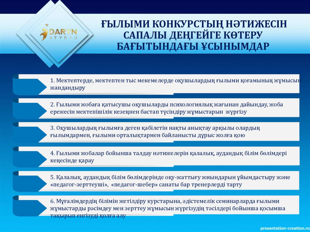 ҒЫЛЫМИ КОНКУРСТЫҢ НӘТИЖЕСІНСАПАЛЫ ДЕҢГЕЙГЕ КӨТЕРУ