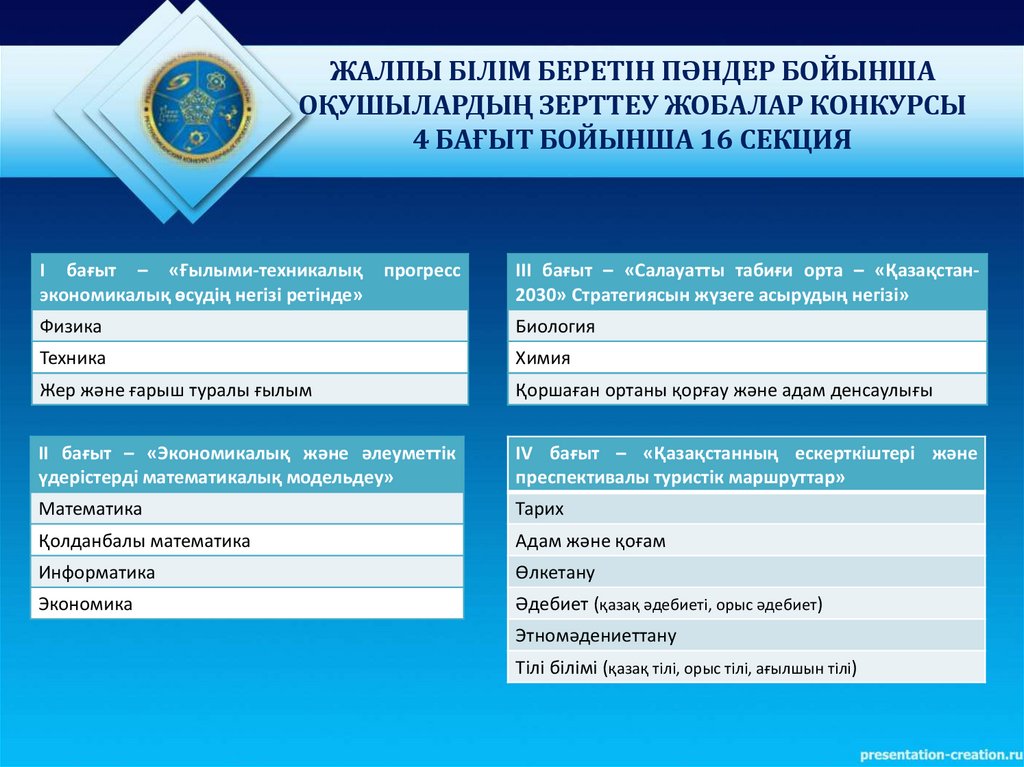 4 БАҒЫТ БОЙЫНША 16 СЕКЦИЯ