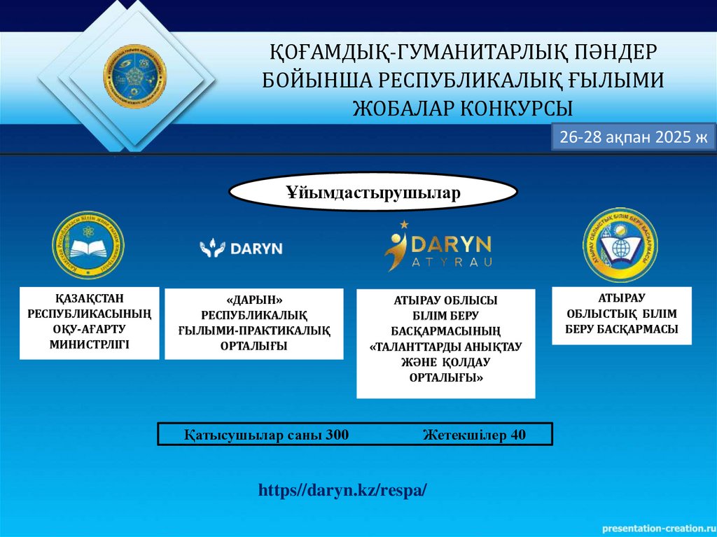 - ДАРЫНДЫ ЖАС ЗЕРТТЕУШІЛЕРДІ ІРІКТЕУ ЖӘНЕ ҚОЛДАУ;