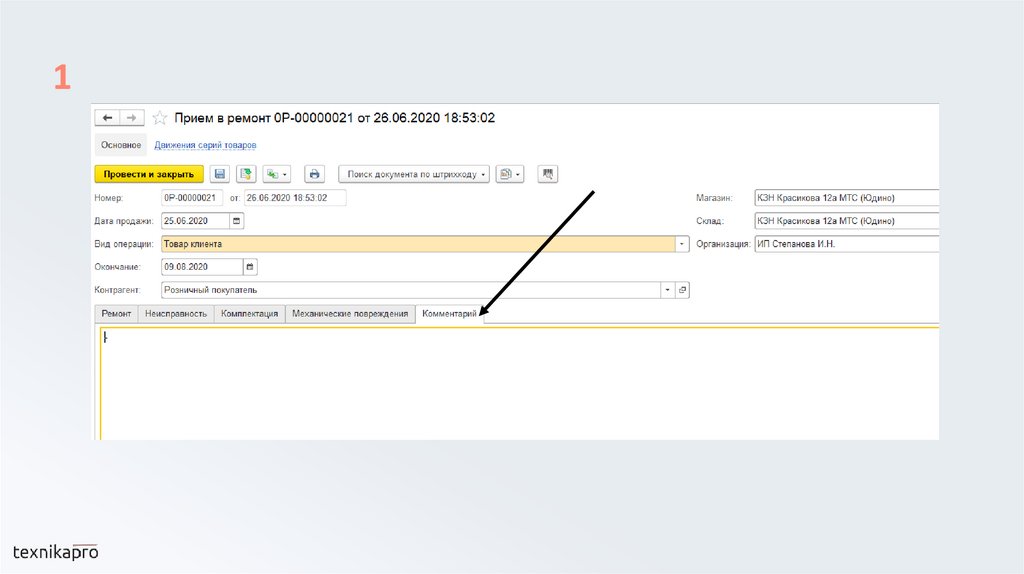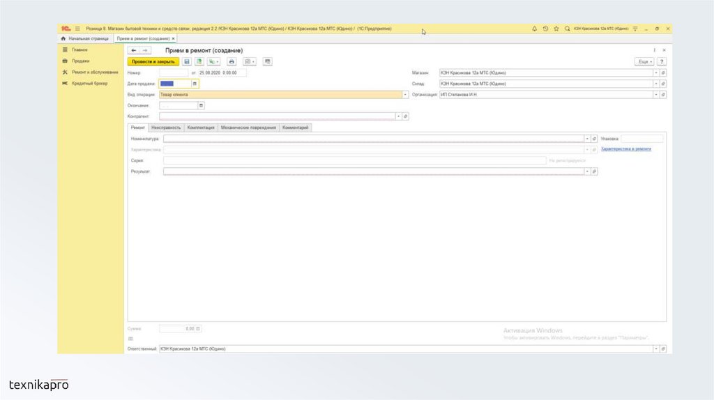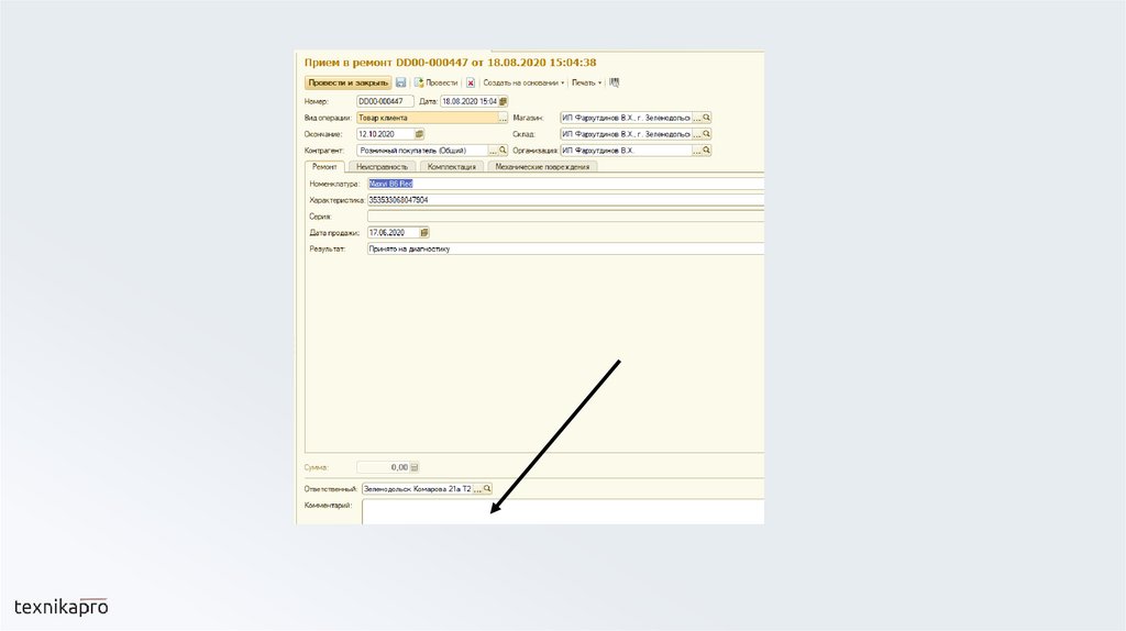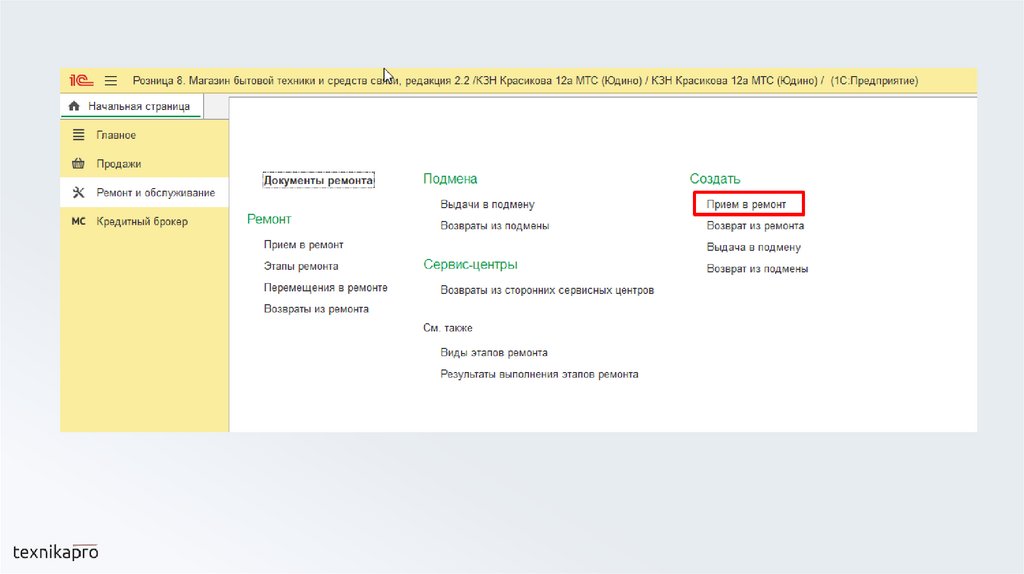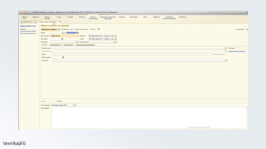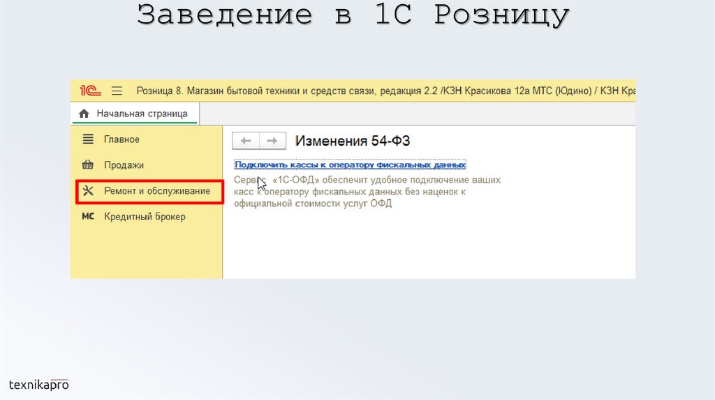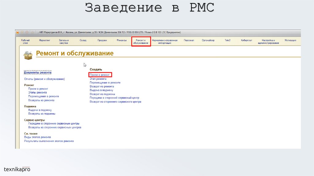 Ремонт (диагностика)Заведение в систему RMS / 1C розница