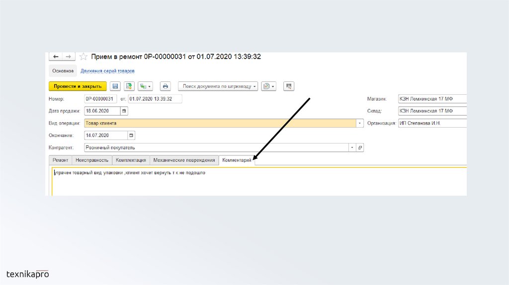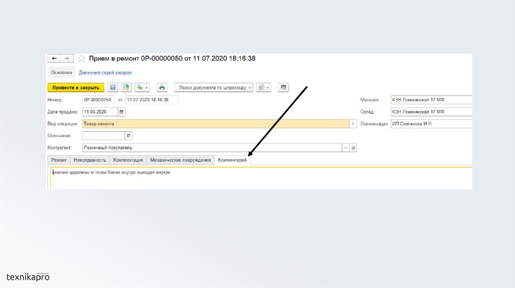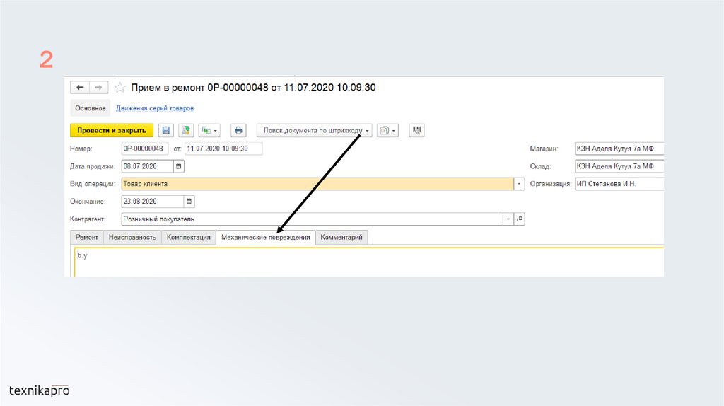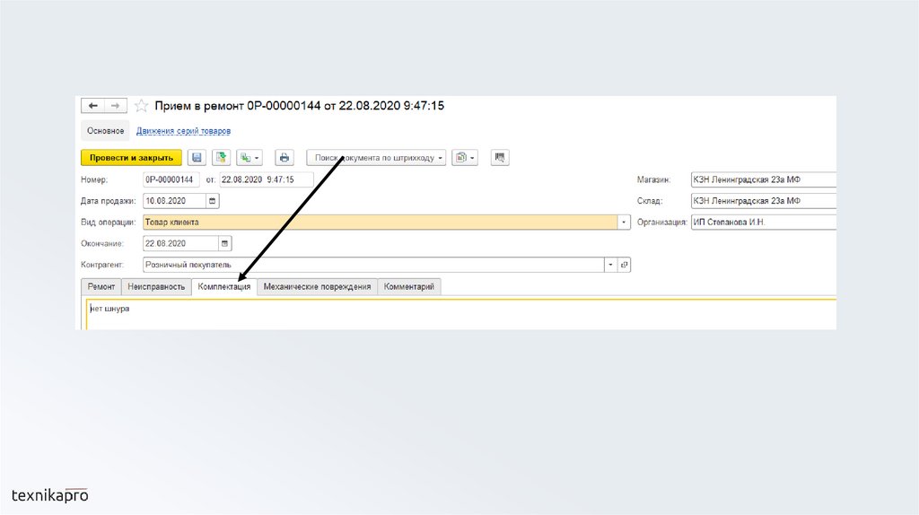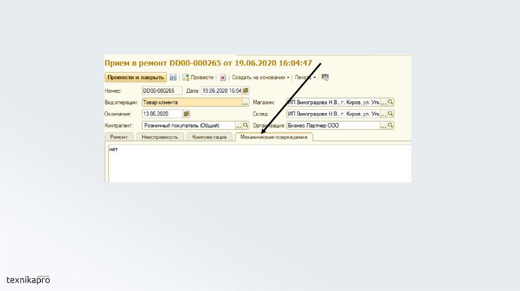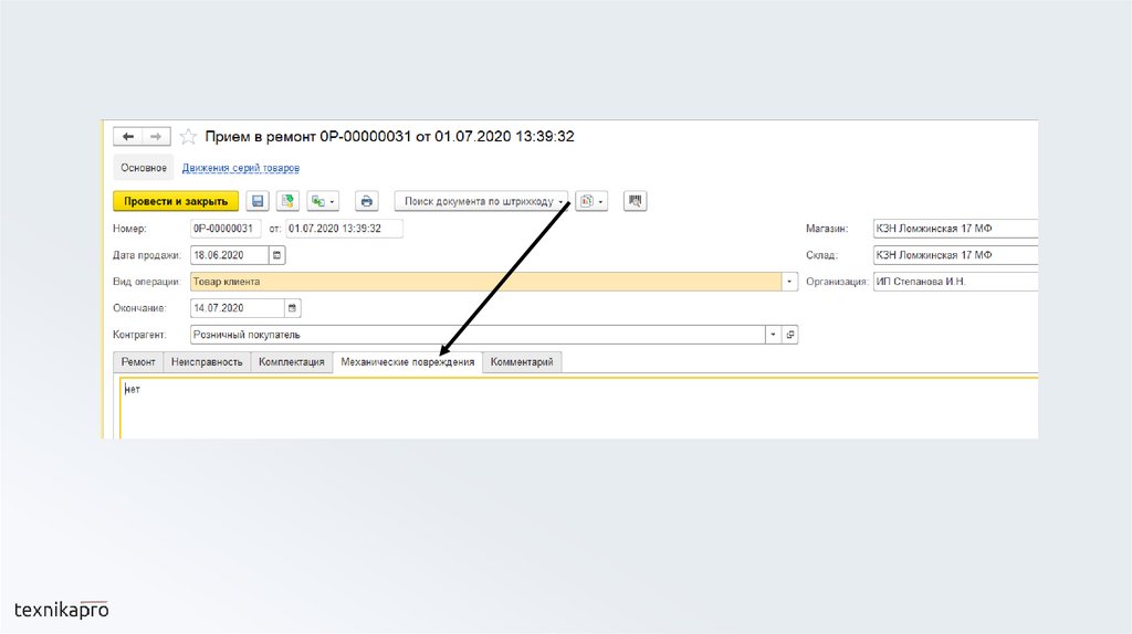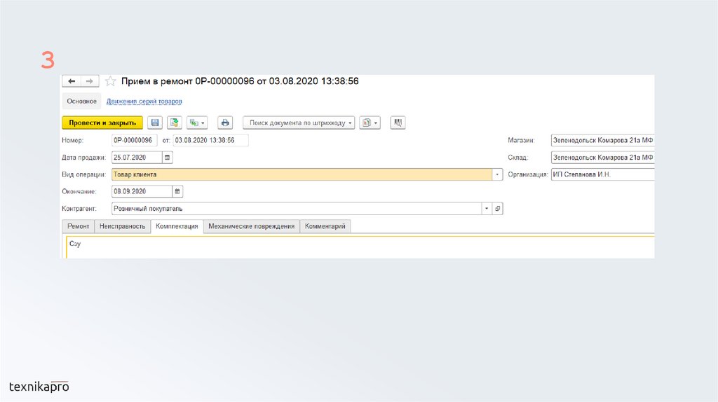 Ремонт (диагностика)Заведение в систему RMS / 1C розница
