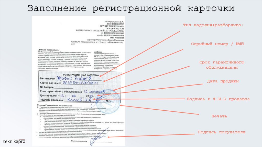 Заполнение регистрационной карточкиТип изделия(разборчиво)