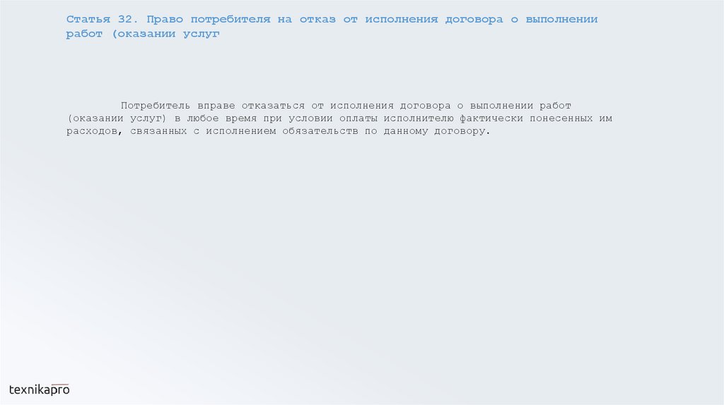 Статья 32. Право потребителя на отказ от исполнения договора о выполненииработ (оказании услуг