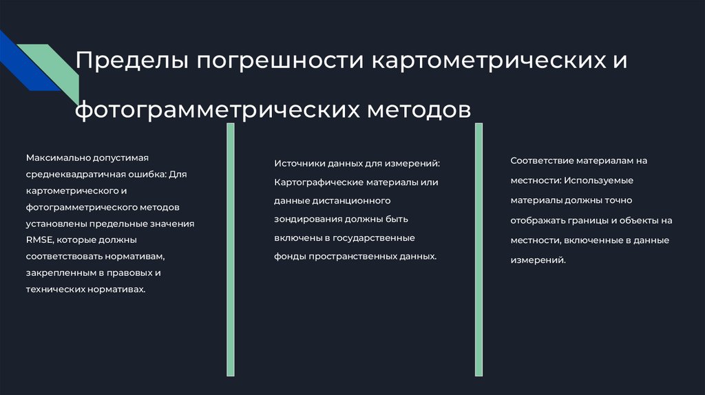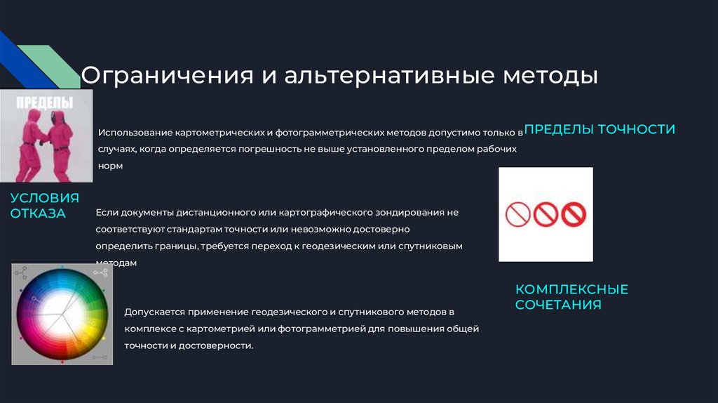 Ограничения и альтернативные методыИспользование картометрических и фотограмметрических методов допустимо только в ПРЕДЕЛЫ ТОЧНОСТИ
