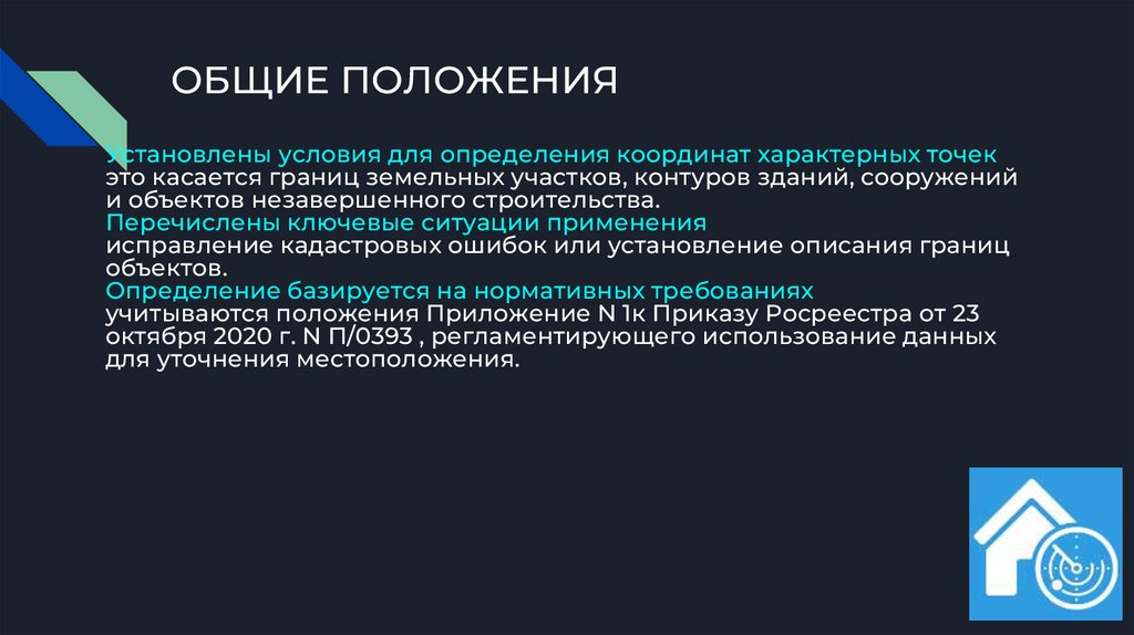 ОБЩИЕ ПОЛОЖЕНИЯУстановлены условия для определения координат характерных точек
