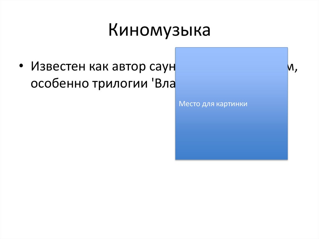 Киномузыка• Известен как автор саундтреков к фильмам,