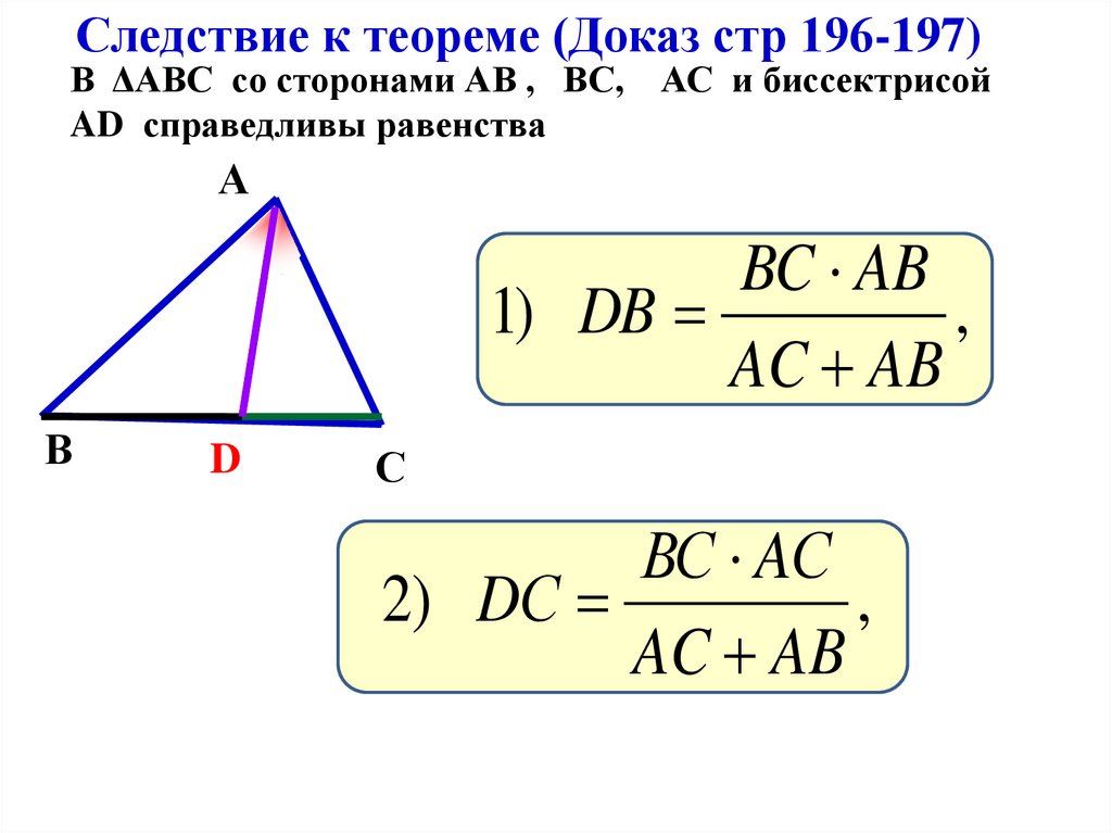 Следствие к теореме (Доказ стр 196-197)В ΔАВС со сторонами АВ , ВС,