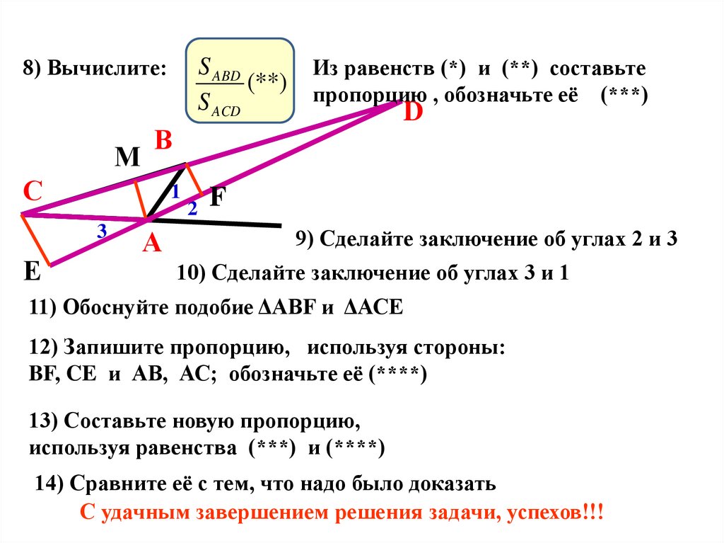 2) Задайте площади: ΔАСD и ΔАВD, используя высоту АМ
