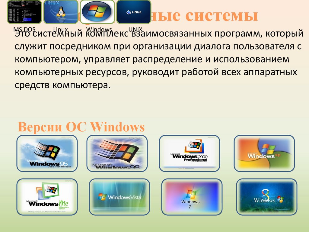 • Запишите все версии ОС Windows.