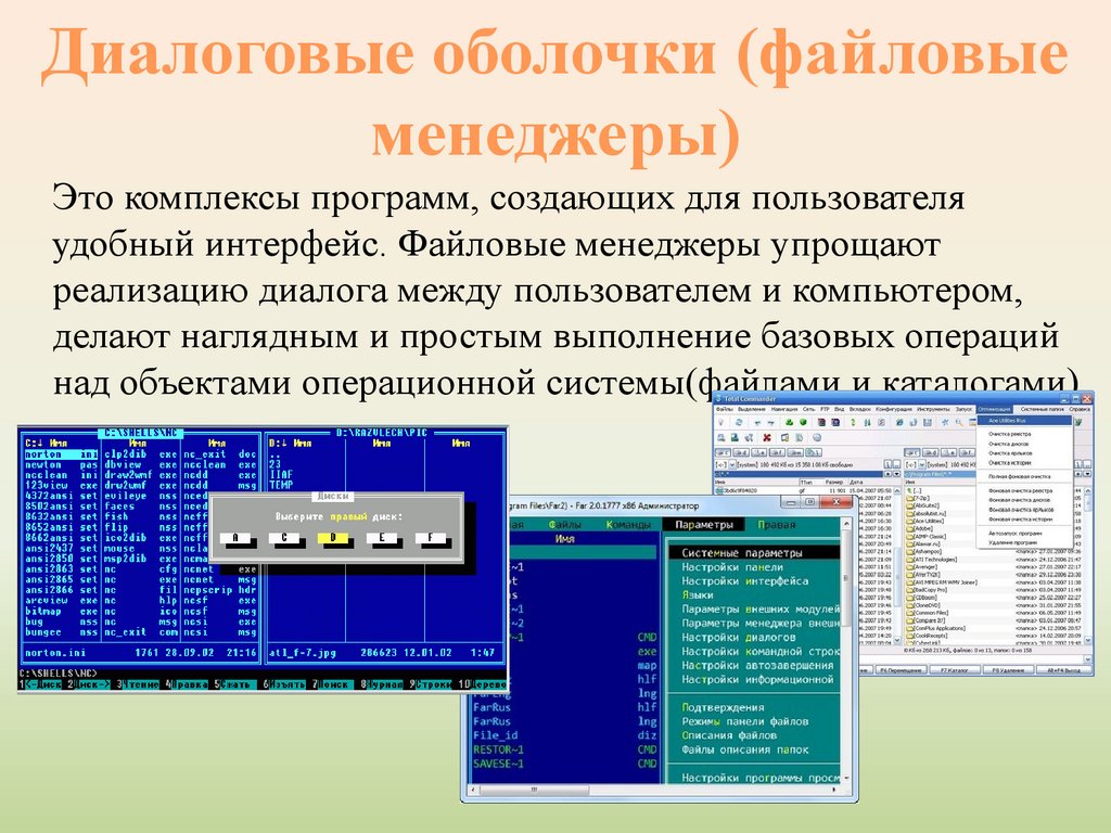 Диалоговые оболочки (файловыеменеджеры)