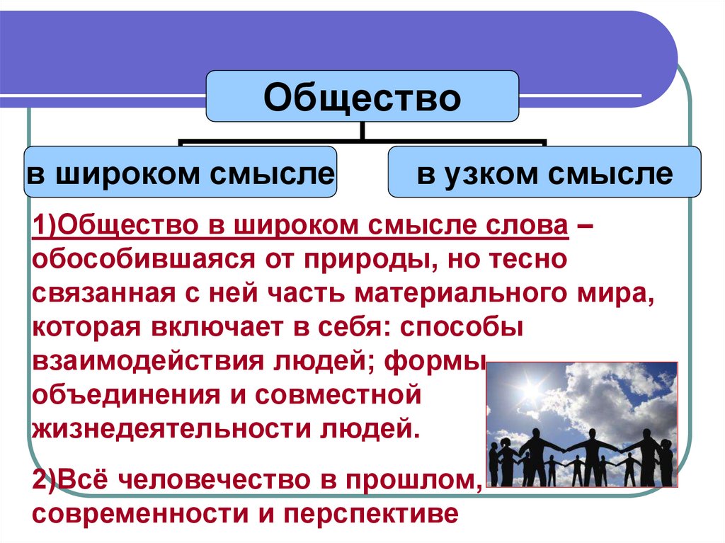 Общество как форма жизнедеятельности людейПод обществом в узком смысле