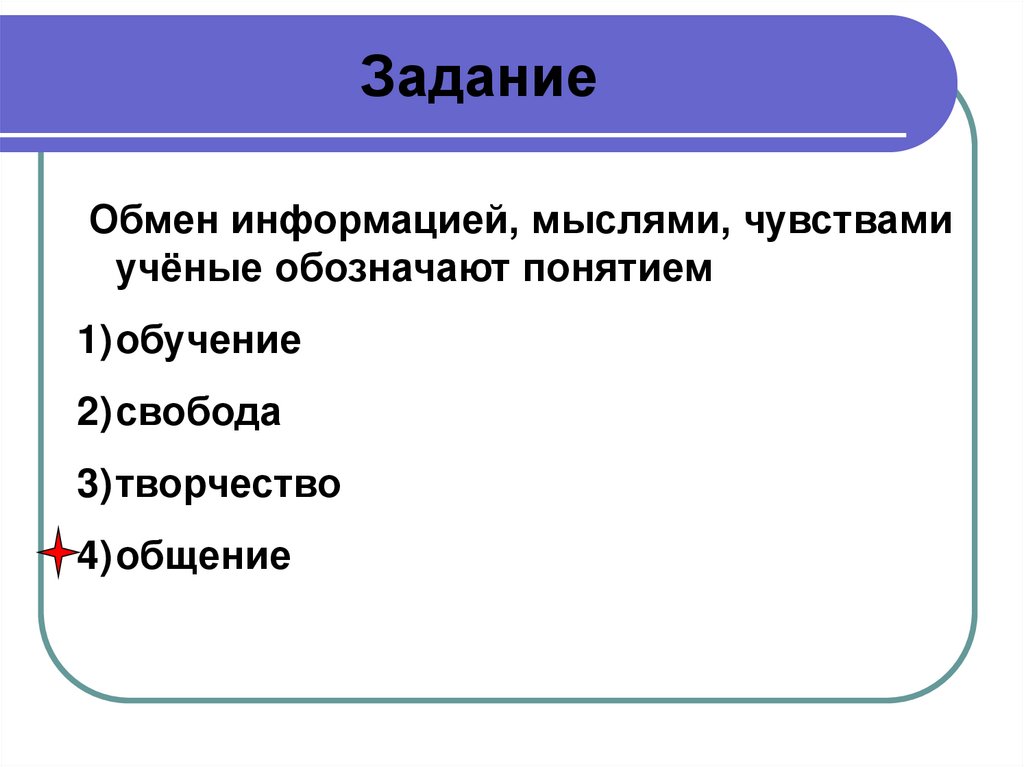 ЗаданиеОбмен информацией, мыслями, чувствами