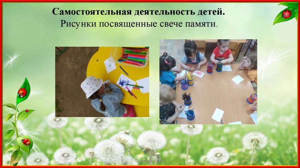 Самостоятельная деятельность детей.Рисунки посвященные свече памяти.
