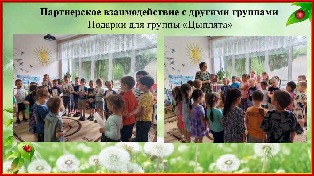 Партнерское взаимодействие с другими группамиПодарки для группы «Цыплята»