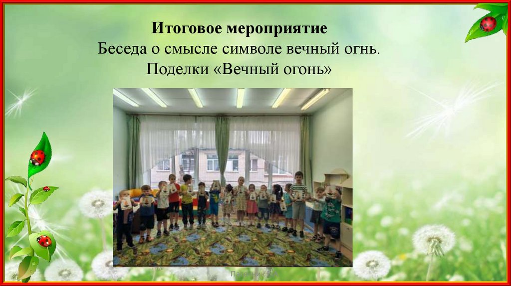 Итоговое мероприятиеБеседа о смысле символе вечный огнь.