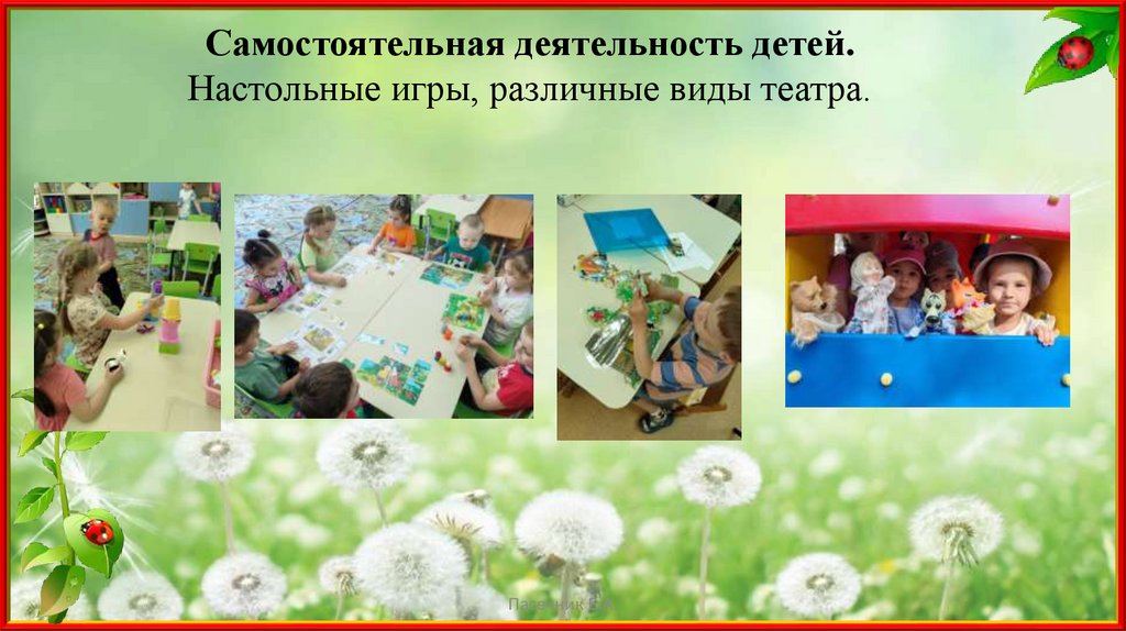 Самостоятельная деятельность детей.Настольные игры, различные виды театра.