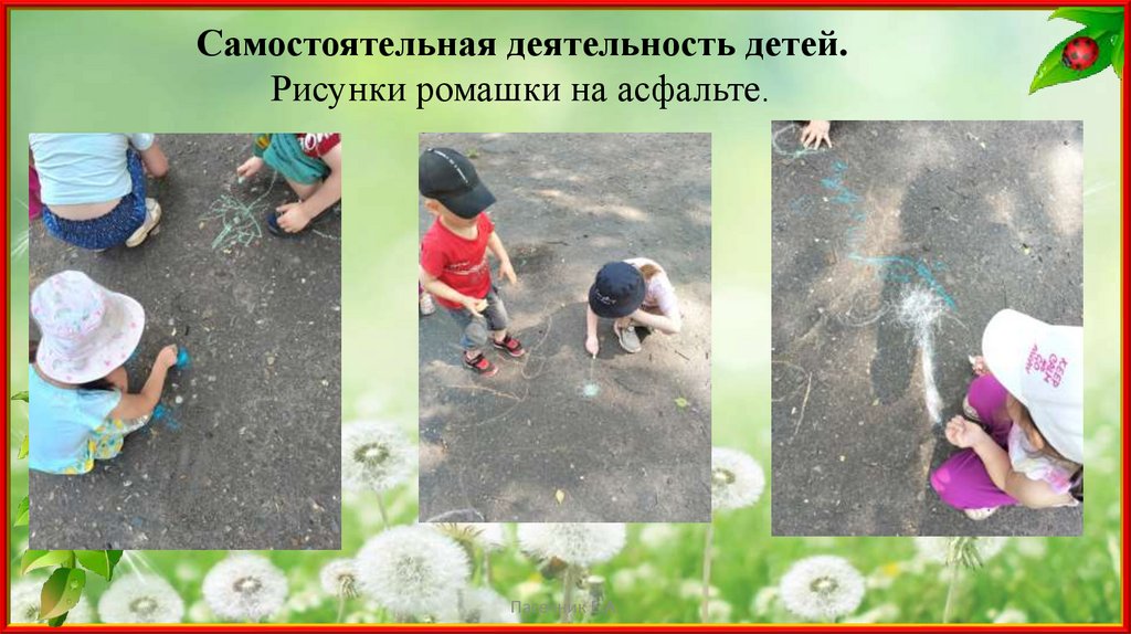 Самостоятельная деятельность детей.Рисунки ромашки на асфальте.