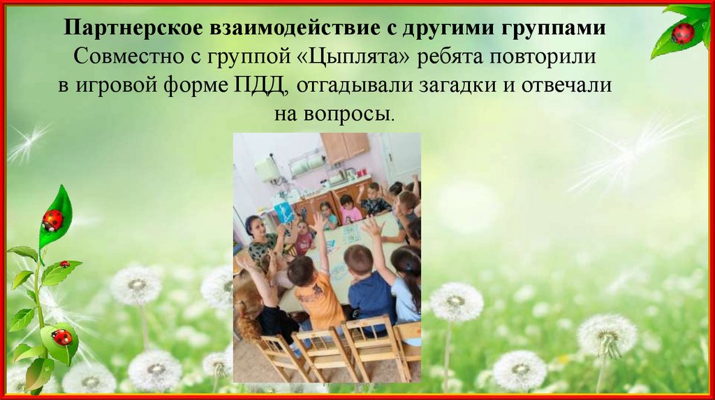 Партнерское взаимодействие с другими группамиСовместно с группой «Цыплята» ребята повторили