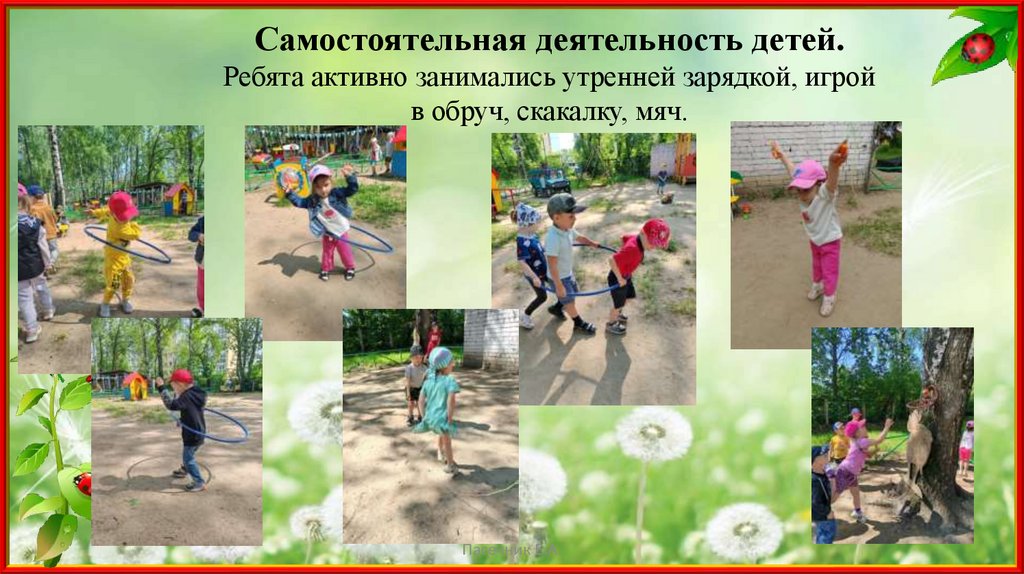 Самостоятельная деятельность детей.Ребята активно занимались утренней зарядкой, игрой